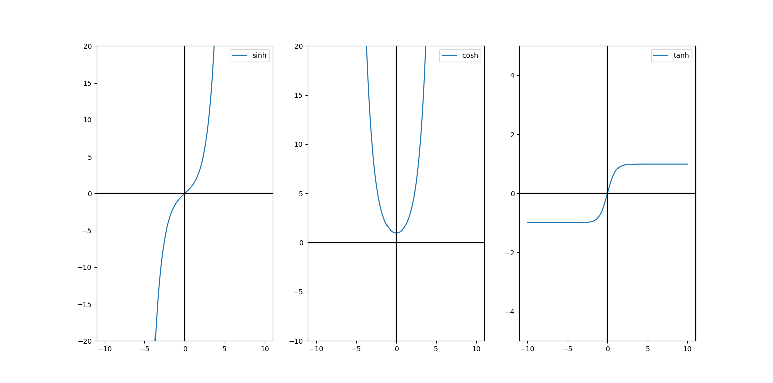 이런 식으로 Numpy 메소드를 활용하면, "sinh", "cosh", "tanh"함수를 활용할 수 있다.