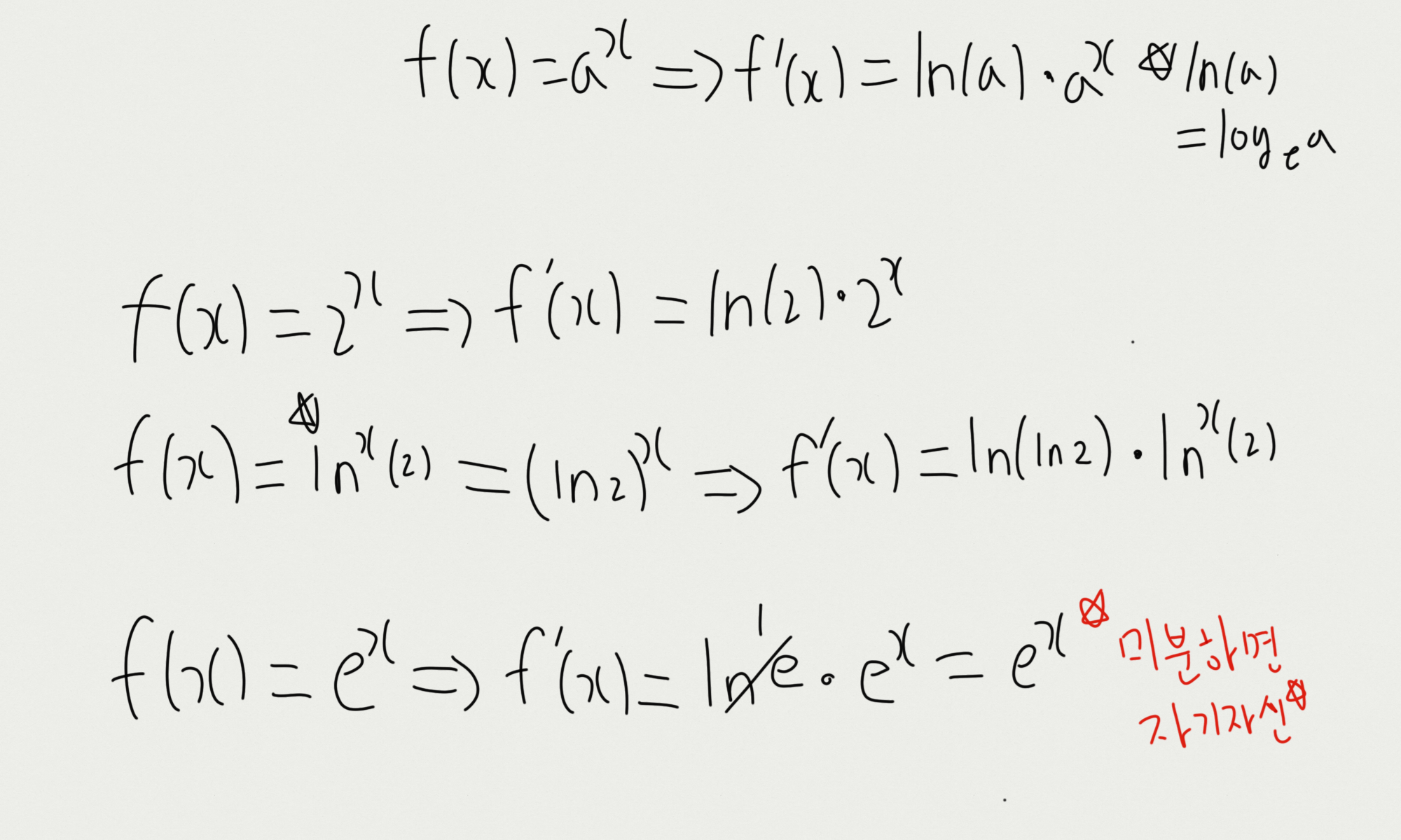 $$ f(x) = a^{x} \rightarrow f'(x)=\ln (a) \cdot a^{x} $$