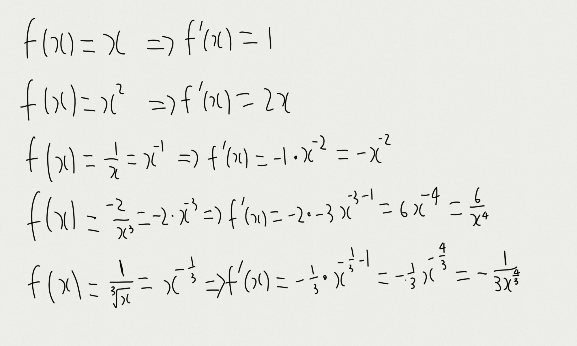 $$ f(x) = x^{c} \rightarrow f'(x)=c \cdot x^{c-1} $$