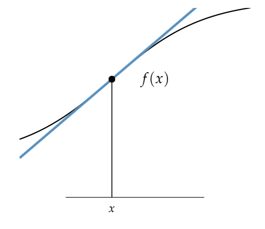 여기서 우리는 f'(x)가 선임을 알 수 있고, delta_x로 선에 따라 이동함으로써 근사점에서 함수의 값을 추정한다.
